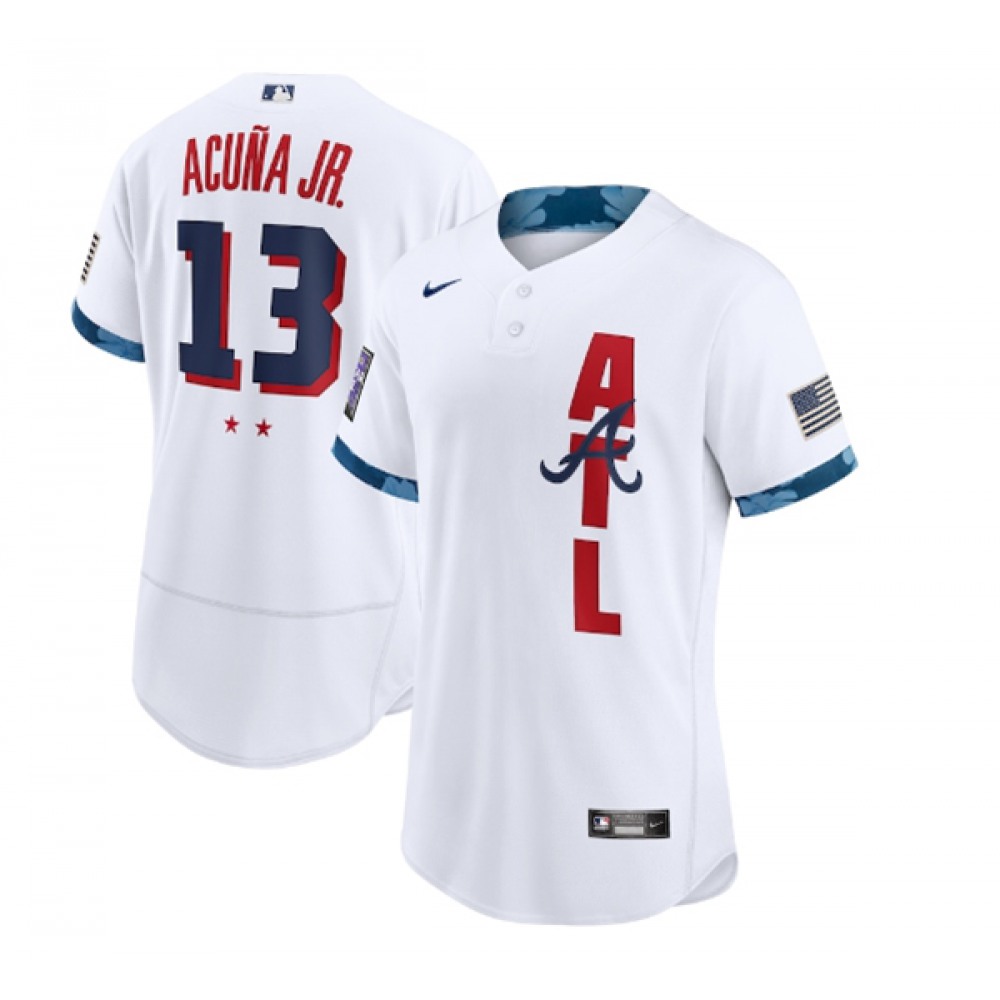 Men's Atlanta Braves #13 Ronald Acuna Jr. 2021 White All-Star Flex Base Stitched MLB Jersey
