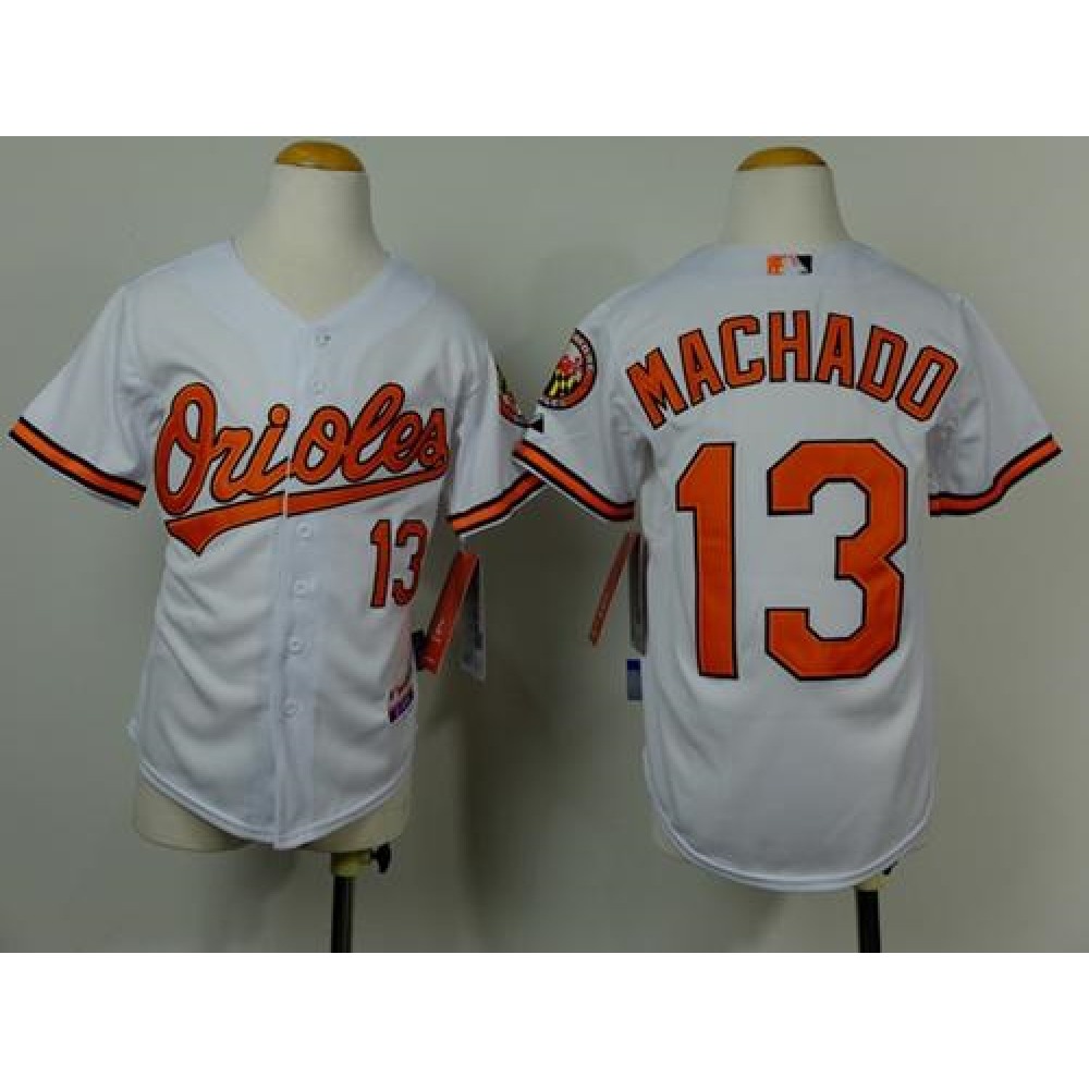Orioles #13 Manny Machado White Cool Base Stitched Youth MLB Jersey