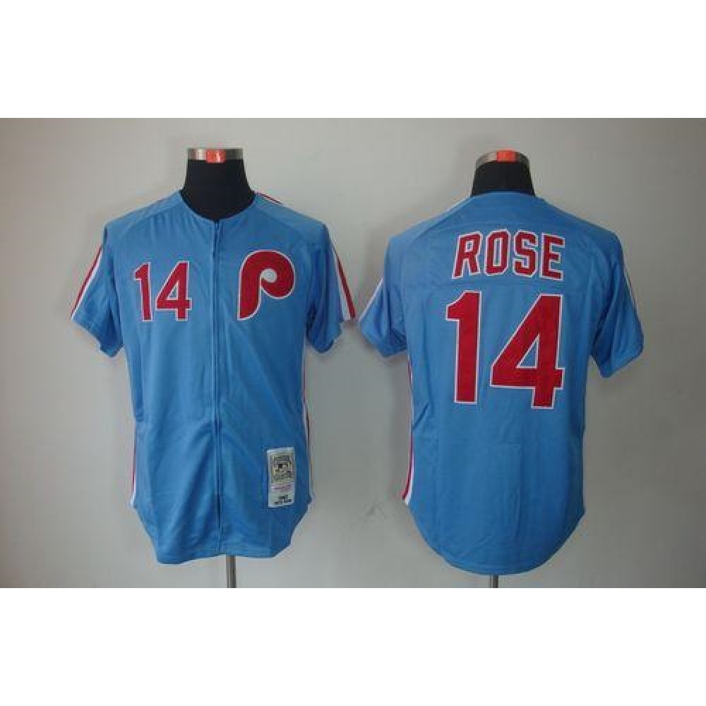 Mitchell And Ness Phillies #14 Rose Blue Stitched Throwback MLB Jersey