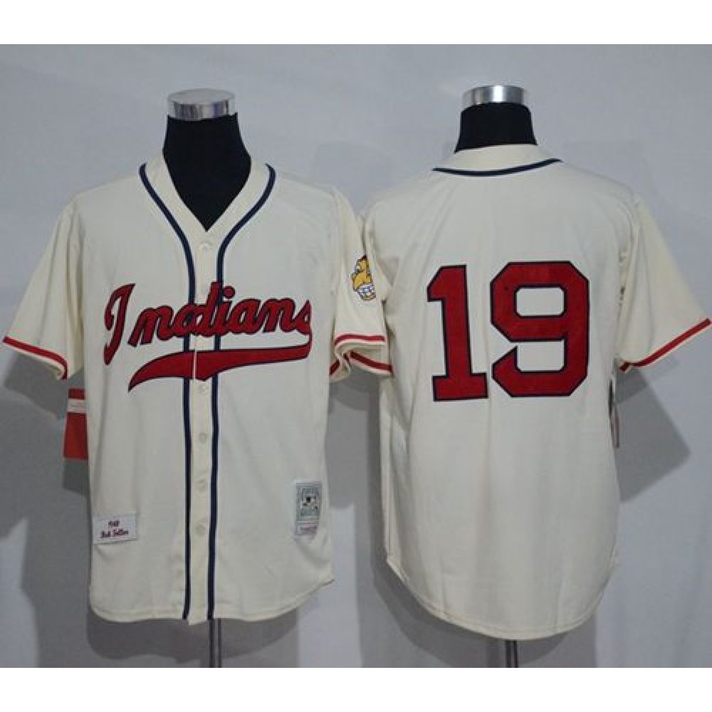 Mitchell And Ness 1948 indians #19 Bob Feller Cream Stitched Throwback MLB Jersey