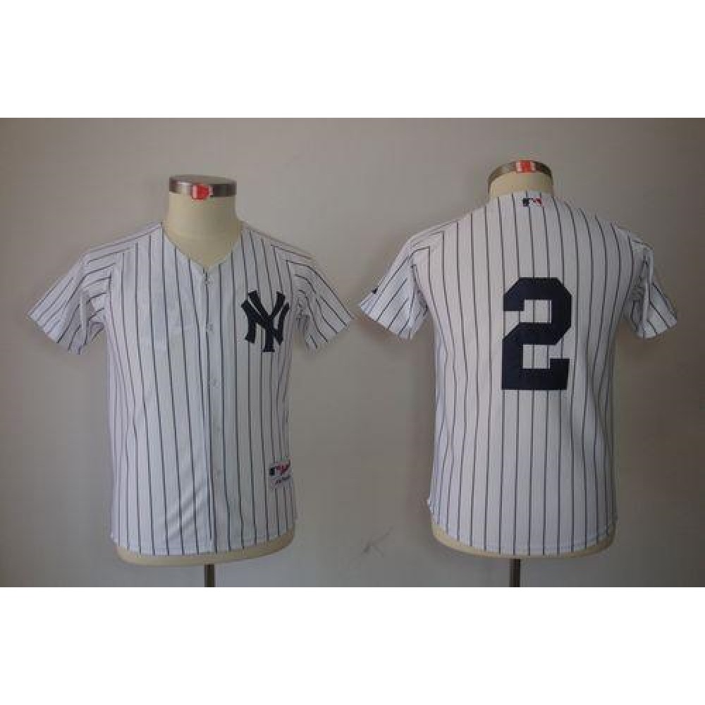Yankees #2 Derek Jeter Stitched White Youth MLB Jersey