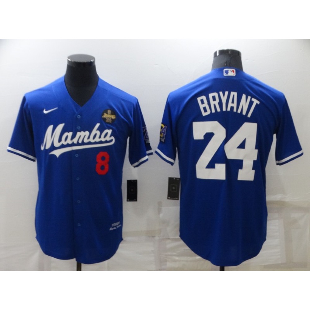 Men's Los Angeles Dodgers Front #8 Back #24 Kobe Bryant Royal 'Mamba' Throwback With KB Patch Cool Base Stitched Jersey