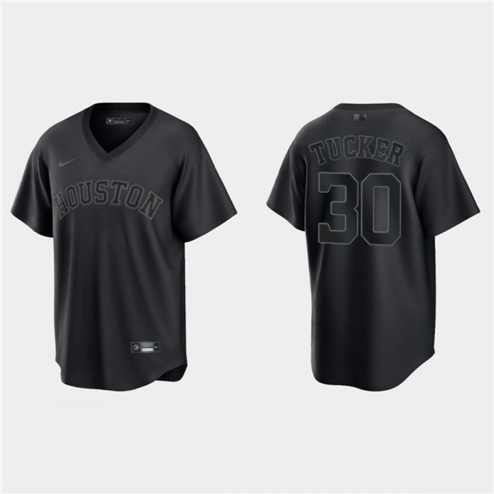 Men's Houston Astros #30 Kyle Tucker Black Pitch Black Fashion Replica Stitched Jersey