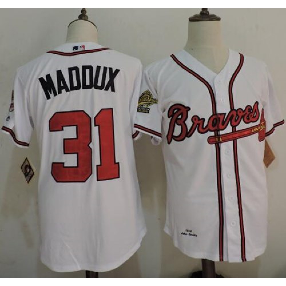 Mitchell And Ness 1995 Braves #31 Greg Maddux White Throwback Stitched MLB Jersey