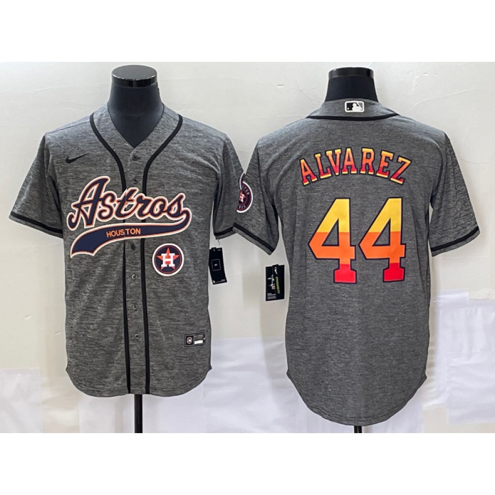 Men's Houston Astros #44 Yordan Alvarez Gray With Patch Cool Base Stitched Baseball Jersey