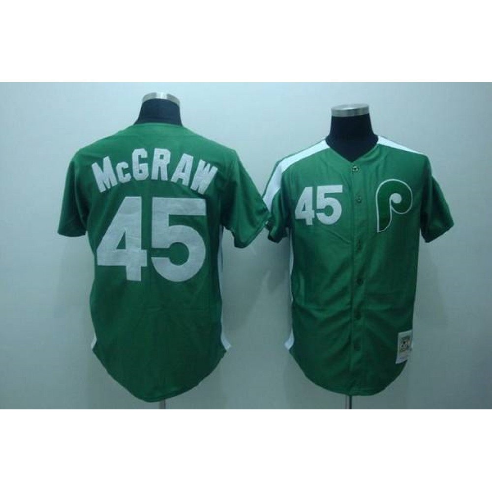 Mitchell and Ness Phillies #45 Tug Mcgraw Green Stitched Throwback MLB Jersey
