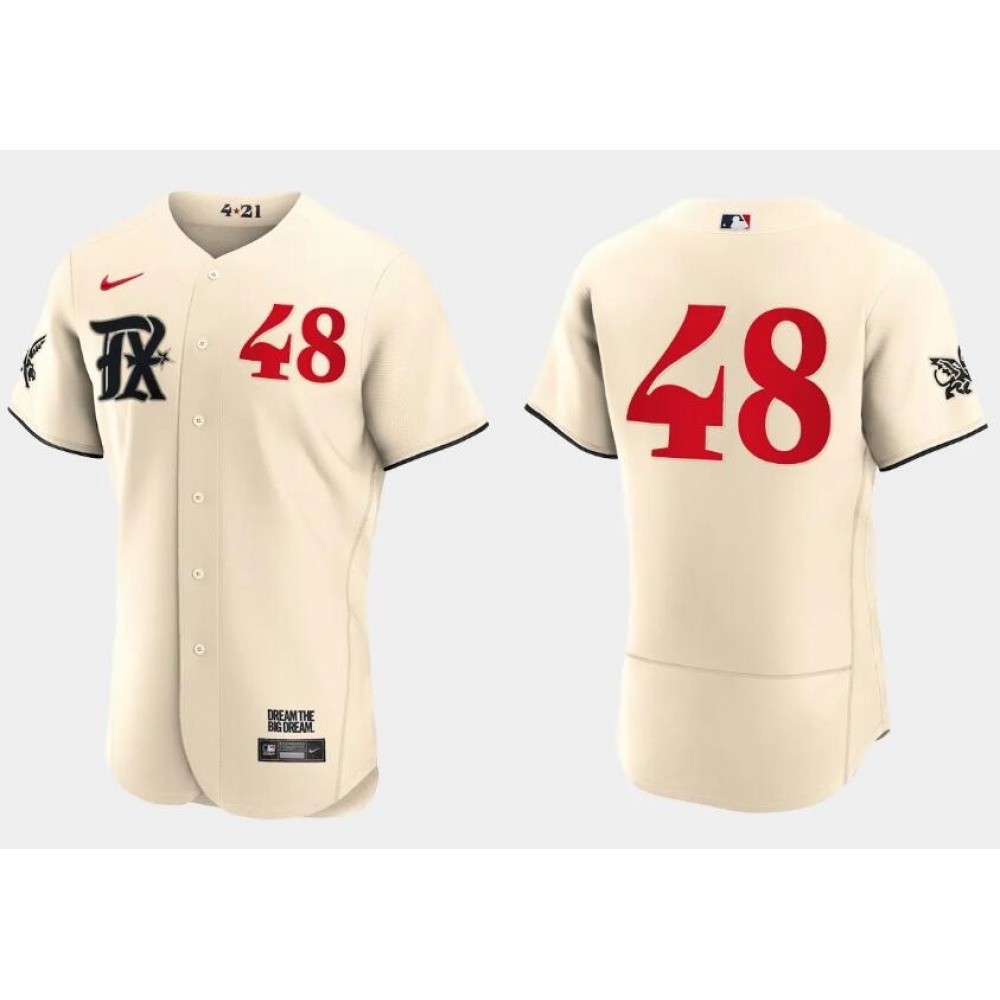 Men's Texas Rangers #48 Jacob DeGrom Cream 2023 City Connect Flex Base Stitched Baseball Jersey