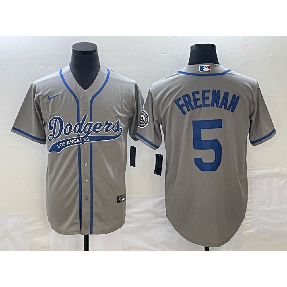 Men's Los Angeles Dodgers #5 Freddie Freeman Gray Cool Base Stitched Baseball Jersey