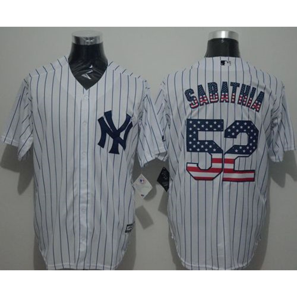 Yankees #52 C.C. Sabathia White Strip USA Flag Fashion Stitched MLB Jersey