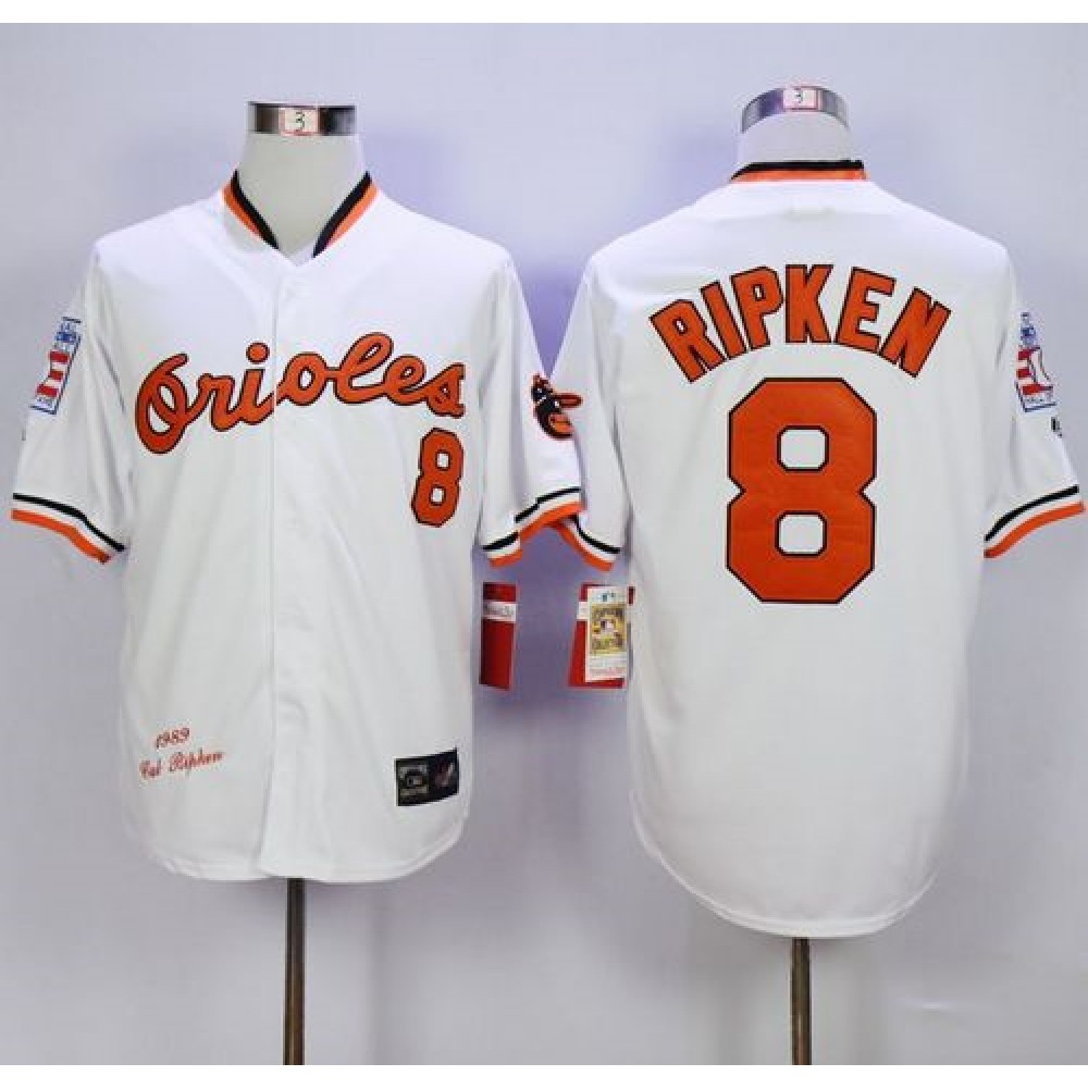 Mitchell And Ness 1989 Orioles #8 Cal Ripken White Throwback Stitched MLB Jersey