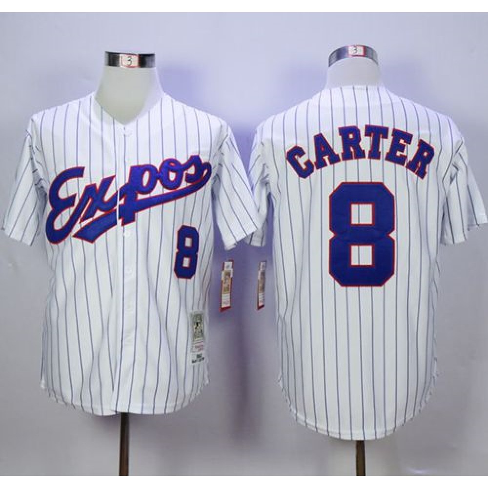 Mitchell And Ness 1982 Expos #8 Gary Carter White(Black Strip) Throwback Stitched MLB Jersey