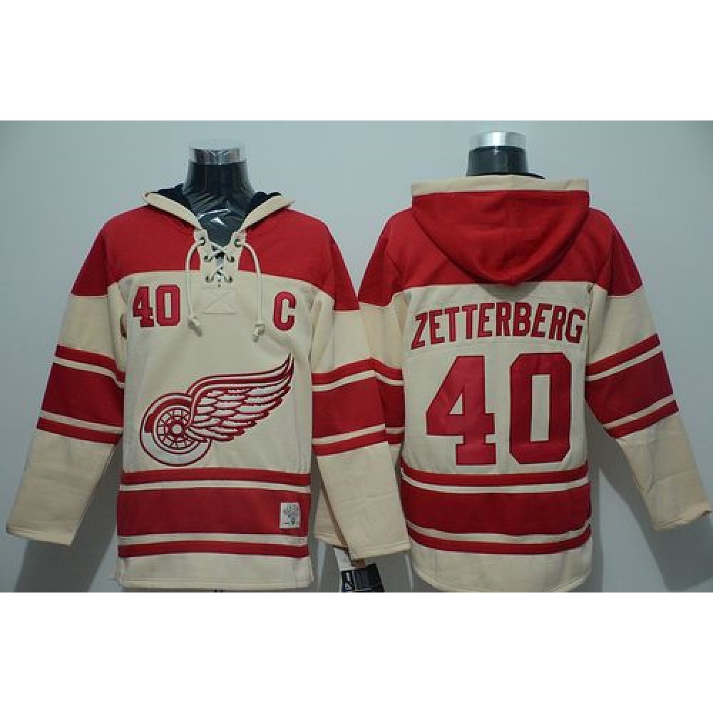 Red Wings #40 Henrik Zetterberg Cream Sawyer Hooded Sweatshirt Stitched NHL Jersey