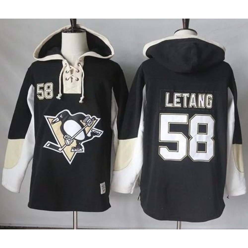 Penguins #58 Kris Letang Black Pullover Hoodie Stitched NHL Jersey