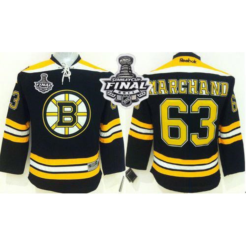 Bruins #63 Brad Marchand Black 2011 Stanley Cup Finals Patch Stitched Youth NHL Jersey