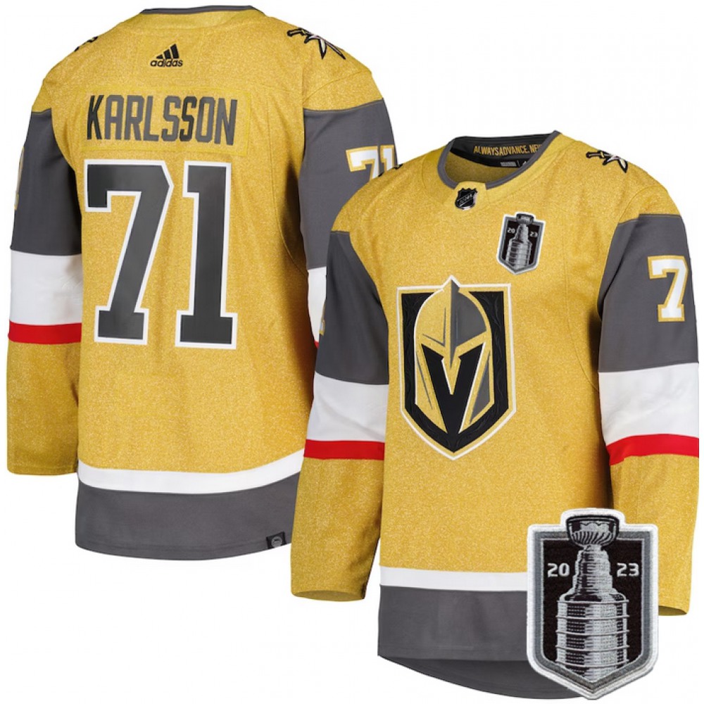 Men's Vegas Golden Knights #71 William Karlsson Gold 2023 Stanley Cup Final Stitched Jersey