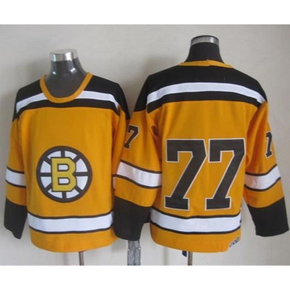 Bruins #77 Ray Bourque Yellow CCM Throwback Stitched NHL Jersey
