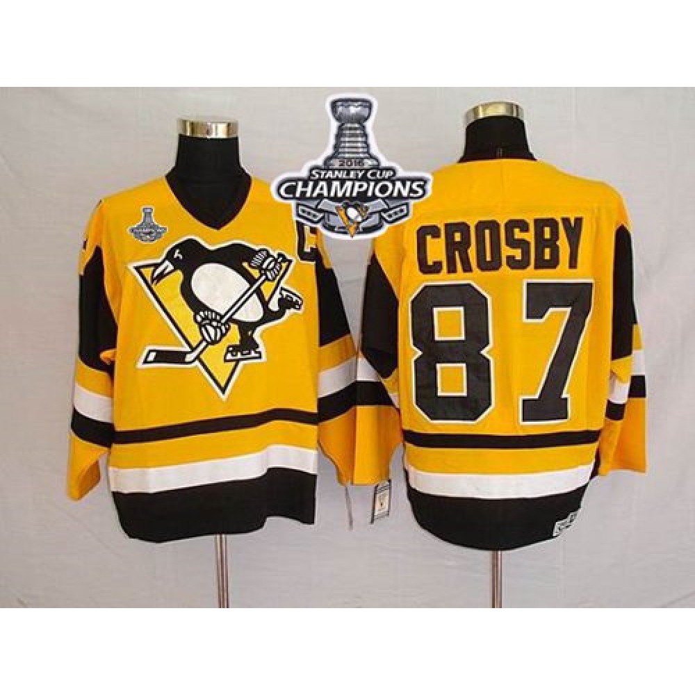 Mitchell&Ness Penguins #87 Sidney Crosby Yellow 2016 Stanley Cup Champions Stitched NHL Jersey