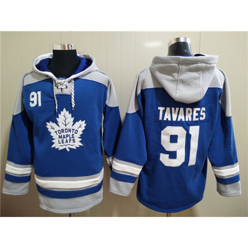 Men's Toronto Maple Leafs #91 John Tavares Blue Ageless Must-Have Lace-Up Pullover Hoodie