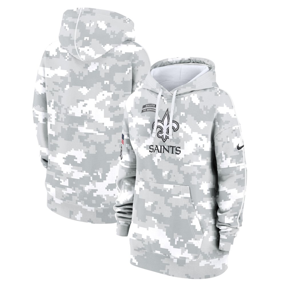 Women's New Orleans Saints Nike Arctic Camo 2024 Salute To Service Club Fleece Pullover Hoodie