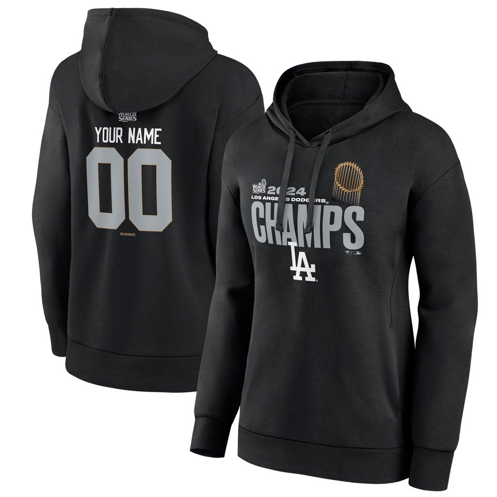 Women's Los Angeles Dodgers Black 2024 World Series Champions Custom Name & Number Pullover Hoodie