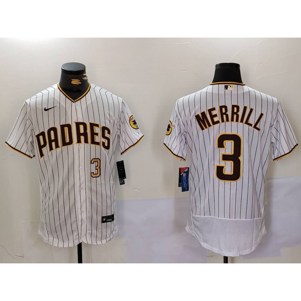 Men's San Diego Padres #3 Jackson Merrill White Flex Base Stitched Baseball Jersey