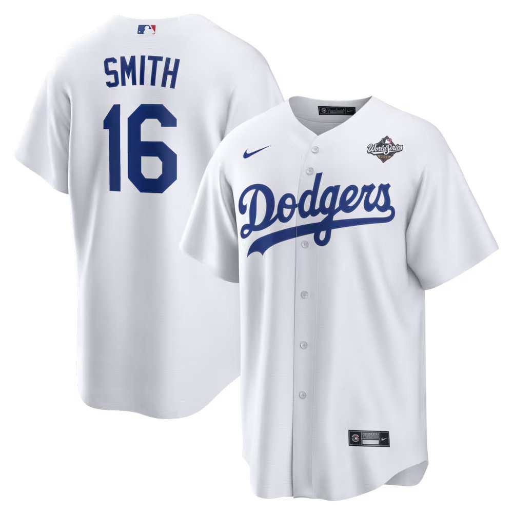 Men's Los Angeles Dodgers #16 Will Smith White 2025 World Series Home Replica Player Jersey