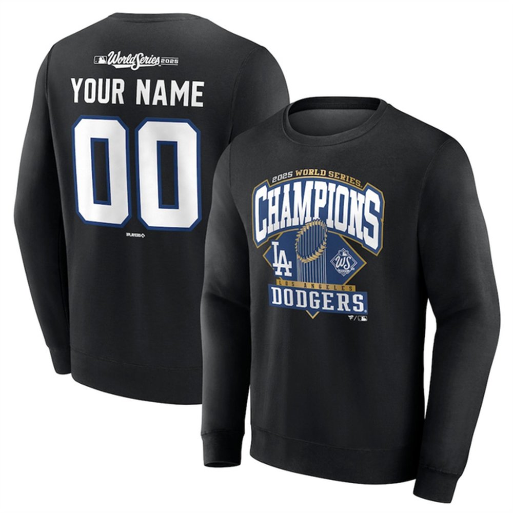 Men's Los Angeles Dodgers Black 2025 World Series Champions Custom Name & Number Fleece Sweatshirt