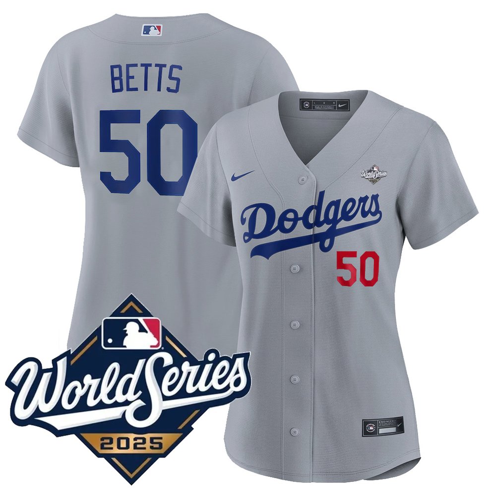 Women's Los Angeles Dodgers #50 Mookie Betts Gray 2025 World Series Home Limited Jersey