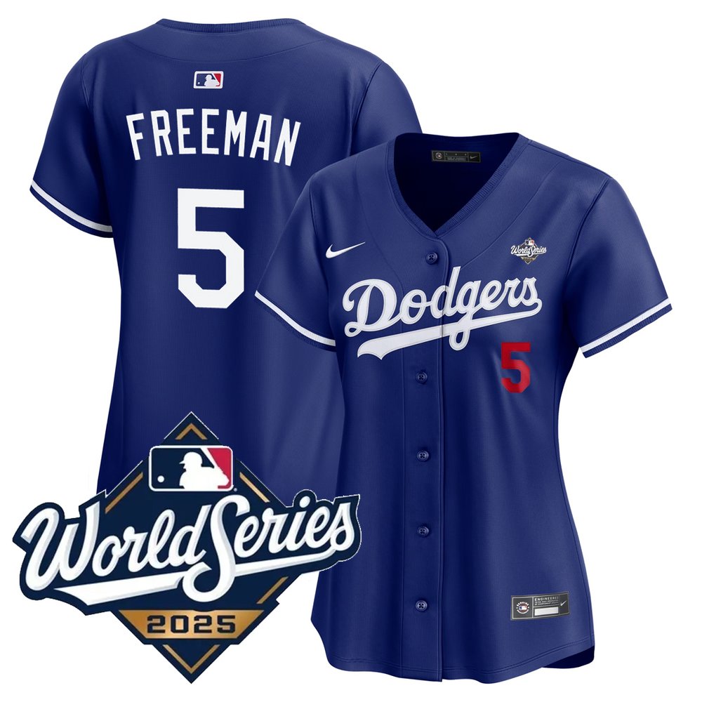 Women's Los Angeles Dodgers #5 Freddie Freeman Nike Royal 2025 World Series Home Limited Jersey