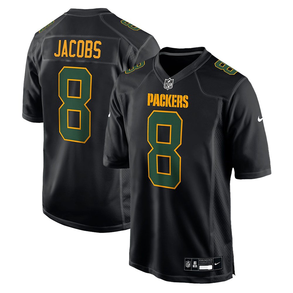 Youth Green Bay Packers #8 Josh Jacobs Nike Carbon Black Fashion Game Jersey